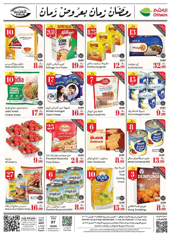 كما تقدم عروض العثيم ركن خليط سيت كروكر شوكولاته , حليب نستله مركز سائل , جبن هالي كريم كاسات , مكرونة العلالي اوزان متنوعة , زيت هالي ذرة , يماه فيكتو احجام مختلفة , شاي ليبتون اكياس , قهوة نسكافيه كلاسيك , كورن فليكس , مناديل وجه شير , حفاضات بامبرز كبير , شامبو هيد اند شولدرز , , شطة رنا خضراء حارة , صلصة طماطم هالي , معجون طماطم كي دي دي , صلصة طماطم هاينز , معجون طماطم لونا , مايونيز قودي فلفل حار , معجون طماطم العلالي , شطة كريستال حار , كاتشب طماطم العلالي , مايونيز مازولا ضغاط , خردل فرشلي عضوي , صلصة سلطة هيرمان الرانش , صلصة فرشلي رانش , صلصة باربكيو ح امريكا اصلي , طحينة حلواني بلاستيك سائلة , طحينة هالي سائلة , مرقة دجاج ماجي , معجون طماطم فيكتو.