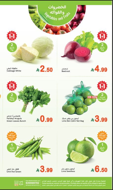 ارز ملك الارز بسمتي مزة , زيت فيكتو للطبخ والقلي , دجاج لي بون مجمد , لحم حاشي بالعظم طازج , كما انه يوجد صابون برسيل أزرق كبير , حليب هالي بودرة , سكر الأسرة ناعم , سمن فارم نقى , مع اضافة زيت أبو فهد للطبخ والقلي عروض العود من عبدالصمد القرشي, حليب فيكتو بودرة , كرواسون بالزعتر.