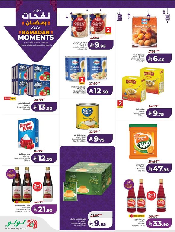 بسكويت لوتس بسكويت بالكراميل 50 قطعة و دوج فيت لايف تشيكن و حلواني اخوان – مربى التوت و توينينجس – الشاي الأخضر والنعناع و لولو لحم تونة ابيض بزيت دوار الشمس و كادبوريس – شوكولاتة بالحليب مجعد بالكراميل و نيرابارا بودرة سامبار و نيرابارا رسام بودرة و لولو فول مدمس و علكة ريجلينت دوبليمنت و بيتي كروكر – خليط كيك سوبر ميست برتقال و بيتي كروكر – مويست سوبر مويست و بيتي كروكر – خليط كيك سوبر ميست شوكولاتة بالحليب .