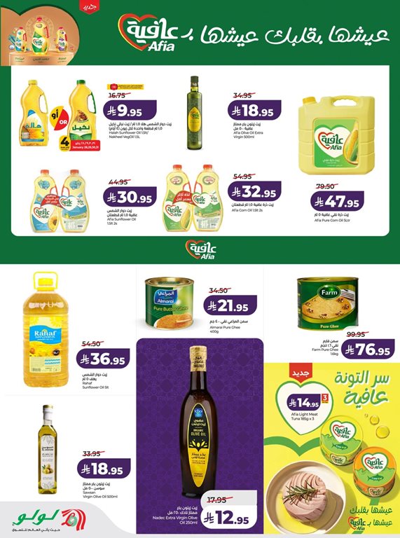 لولو – حليب مجفف كامل الدسم و جولون بيو بسكويت ماريا العضوي و ارز بسمتي فاخر من زيبا و الصافي عصير فواكه مشكلة و الصافي عصير برتقال و ماجي – صلصة نابوليتانا و المراعي – عصير أناناس سوبر و صلصة الموز الحارة والتوابل و كوكتيل راني فواكه و فير فريش تابيوكا مجمدة و قودي – معكرونة الكوع و قودي – مكرونة فوسيلي و قودي شعيرية و قودي – فاصوليا مطبوخة بصلصة الطماطم و بوك.