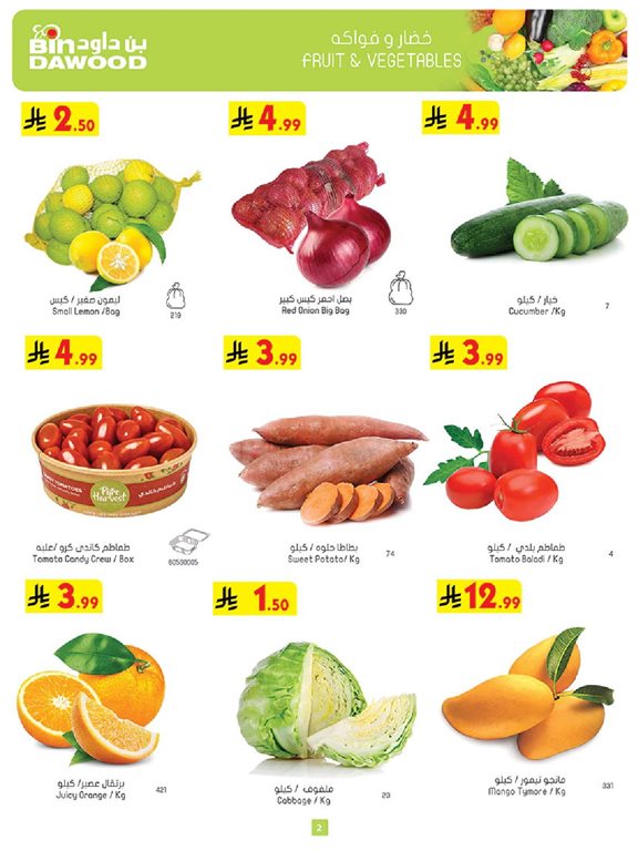 طرحت عروض بن داود اليوم Bin Dawood عرض خاص من بوك حليب مجفف Puck Milk Powder , الارز البسمتي الوليمة Al Walimah , وسمك التونة المعلب من هاينز او هينز Heinz و هينز كاتشب , واهم الزيوت الموجودة نور زيت دوار الشمس , وعصير برتقال طازج بالإضافة إلى كثير من الفاكهة من تفاح جالا ومانجو بادام و افندي اسباني وكذلك جوافة وكنتلوب مصري وخوخ مصري و رطب سكرية , كما طرحت بيبي كورن ذرة و زنجبيل اخضر.
