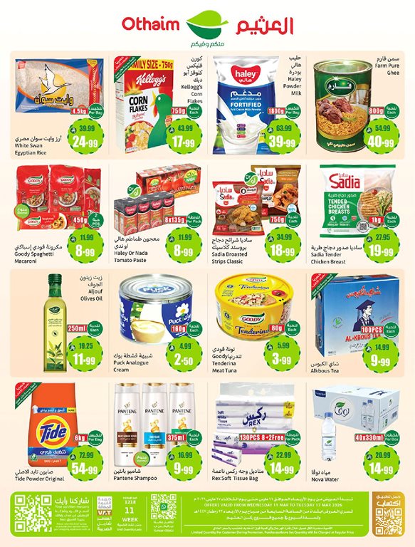 كما تقدم عروض العثيم ركن خليط سيت كروكر شوكولاته , حليب نستله مركز سائل , جبن هالي كريم كاسات , مكرونة العلالي اوزان متنوعة , زيت هالي ذرة , يماه فيكتو احجام مختلفة , شاي ليبتون اكياس , قهوة نسكافيه كلاسيك , كورن فليكس , مناديل وجه شير , حفاضات بامبرز كبير , شامبو هيد اند شولدرز , , شطة رنا خضراء حارة , صلصة طماطم هالي , معجون طماطم كي دي دي , صلصة طماطم هاينز , معجون طماطم لونا , مايونيز قودي فلفل حار , معجون طماطم العلالي , شطة كريستال حار , كاتشب طماطم العلالي , مايونيز مازولا ضغاط , خردل فرشلي عضوي , صلصة سلطة هيرمان الرانش , صلصة فرشلي رانش , صلصة باربكيو ح امريكا اصلي , طحينة حلواني بلاستيك سائلة , طحينة هالي سائلة , مرقة دجاج ماجي , معجون طماطم فيكتو.