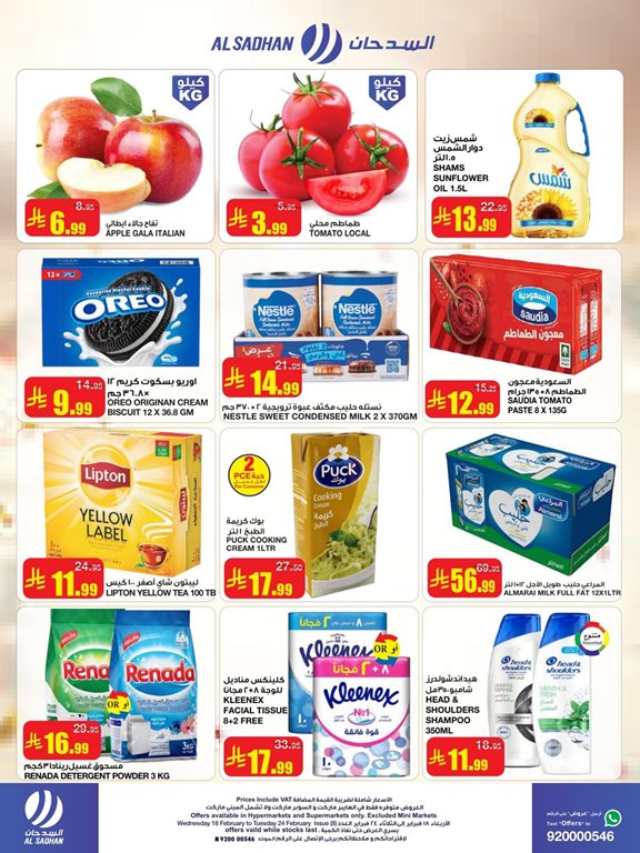 عروض السدحان Al Sadhan , هيد أند شولدرز شامبو شعر متنوع Head & Shoulders , برتقال عصير و العريش صدور دجاج , أومو مسحوق غسيل ملابس Omo Powder , الوليد زيت طبخ و الوليد حليب بودرة, الوليمة ارز مزة ستايل Walimah Rice , ليبتون شاي Lipton , نادك جبنة كريم شيدر قابلة للدهن Nadec , مونتانا خضروات وفاكهة مجمدة , المراعي جبنة كريمية , أولكر لبنة تركية Ulker , امريكانا دجاج مجمد Americana.