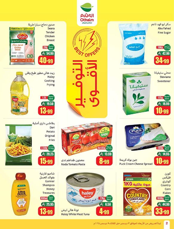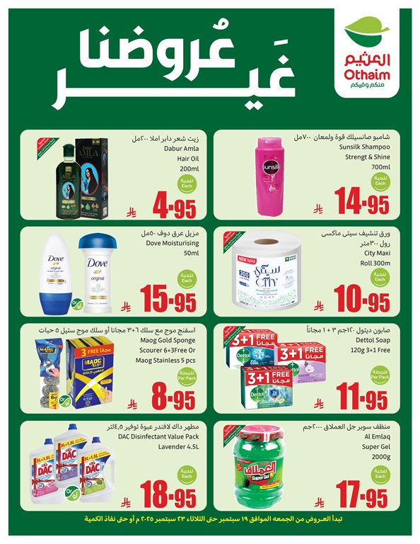 السنبلة برجر دجاج بقسماط والشفا عسل طبيعي و ايضا السنبلة برجر بقر عادي, و السنبلة بزاليا مجمدة والسنبلة بطاطس مقلية والسنبلة كباب بقري , قودي تونة تندرينا ناعمة Goody Tuna , قودي ذرة حبة ذهبية علب , قوي خل أبيض و قودي ورق عنب , عرض العثيم الاثنين الطازج , قميص رجالي كاجول منوع , بنطلون جينز رجالي منوع , منشفة حمام منوع , سارا طقم قدور, موج مكنسة ناعمة وخشنة , هوم ميكر صينية فرن , نسكافيه قهوة كلاسيك Nescafe Classic Coffee , هيربال شامبو Herbal Shampoo , فاين مناديل وجه Fine Facial Tissues u .