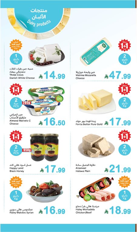 حليب ابو قوس البودرة حجم ٢٥٠٠ جرام متى يكون عليه عرض وكذالك جبنة شيدر هالي، وكذالك ودنا يكون فيه فرن للخبز والفطاير والمعجنات وكذلك أسماك طازجة في فرع محافظة طبرجل في منطقة الجوف